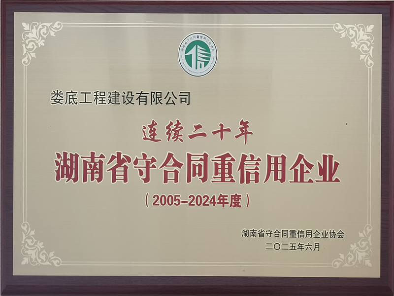 2005-2024年度連續二十年湖南省守合同重信用企業牌匾